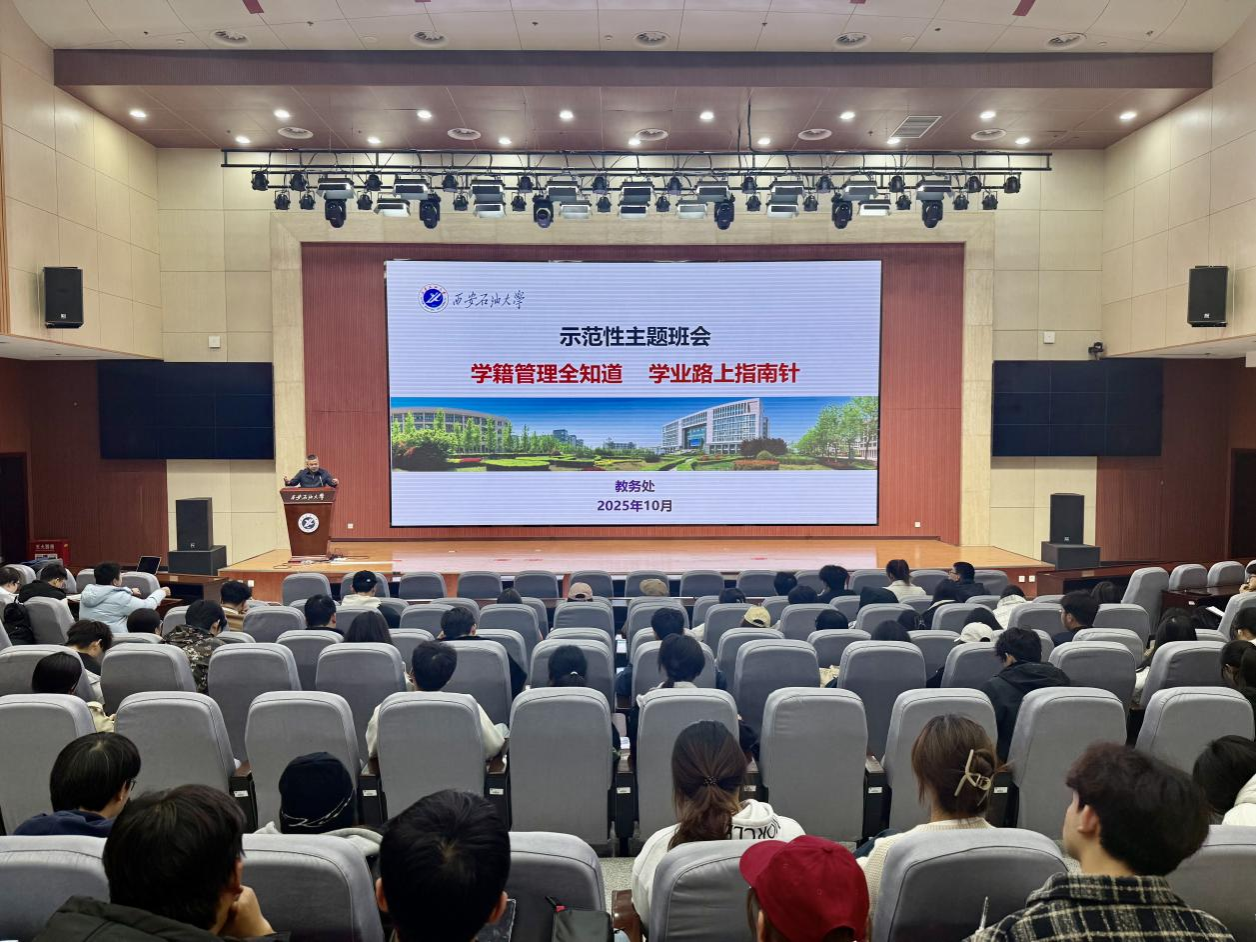 李刚围绕学籍基本概念、管理规定、常见问题及业务流程等方面对《西安石油大学全日制本科生学籍管理规定》《西安石油大学学士学位授予工作细则》《西安石油大学本科课程补考和重修管理办法》等七项学籍管理制度进行了解读。他详细阐述了学籍的定义及其重要性,指出学籍是学生在校学习、生活和获取学历学位证书的一种法律上的身份或资格。随后,他系统介绍了入学与注册、纪律与考勤、考核与成绩记载、转专业与转学、休学与复学、学业预警与退学、毕业与学位授予等环节的管理政策与操作流程。李刚重点强调了课堂纪律、过程性考核、缓考与补考、重修机制、学业预警等级划分、转专业条件、四六级考试报名要求等与学生密切相关的具体内容。他提醒同学们日常中要密切关注教务处网站通知,认真研读《学生手册》中的各项制度,科学合理地规划学业发展。