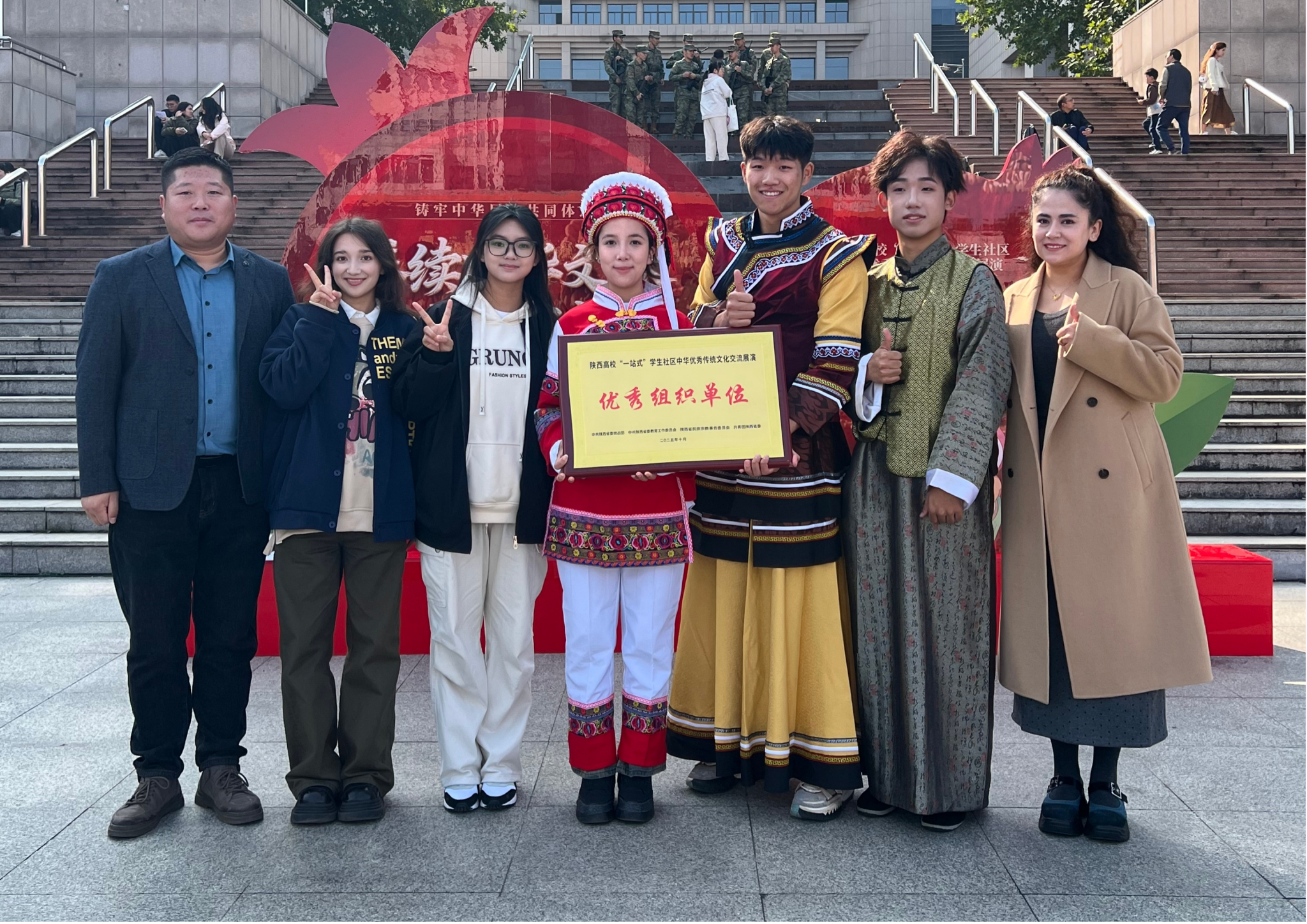 10月26日上午“铸牢中华民族共同体意识——赓续中华文脉,铸魂时代新人”2025年陕西高校“一站式”学生社区中华优秀传统文化交流展演活动在西安交通大学圆满落幕。我校党委统战部、学生工作部(处)工作人员及学生代表十余人共同参加活动,并荣获“优秀组织单位”称号。
