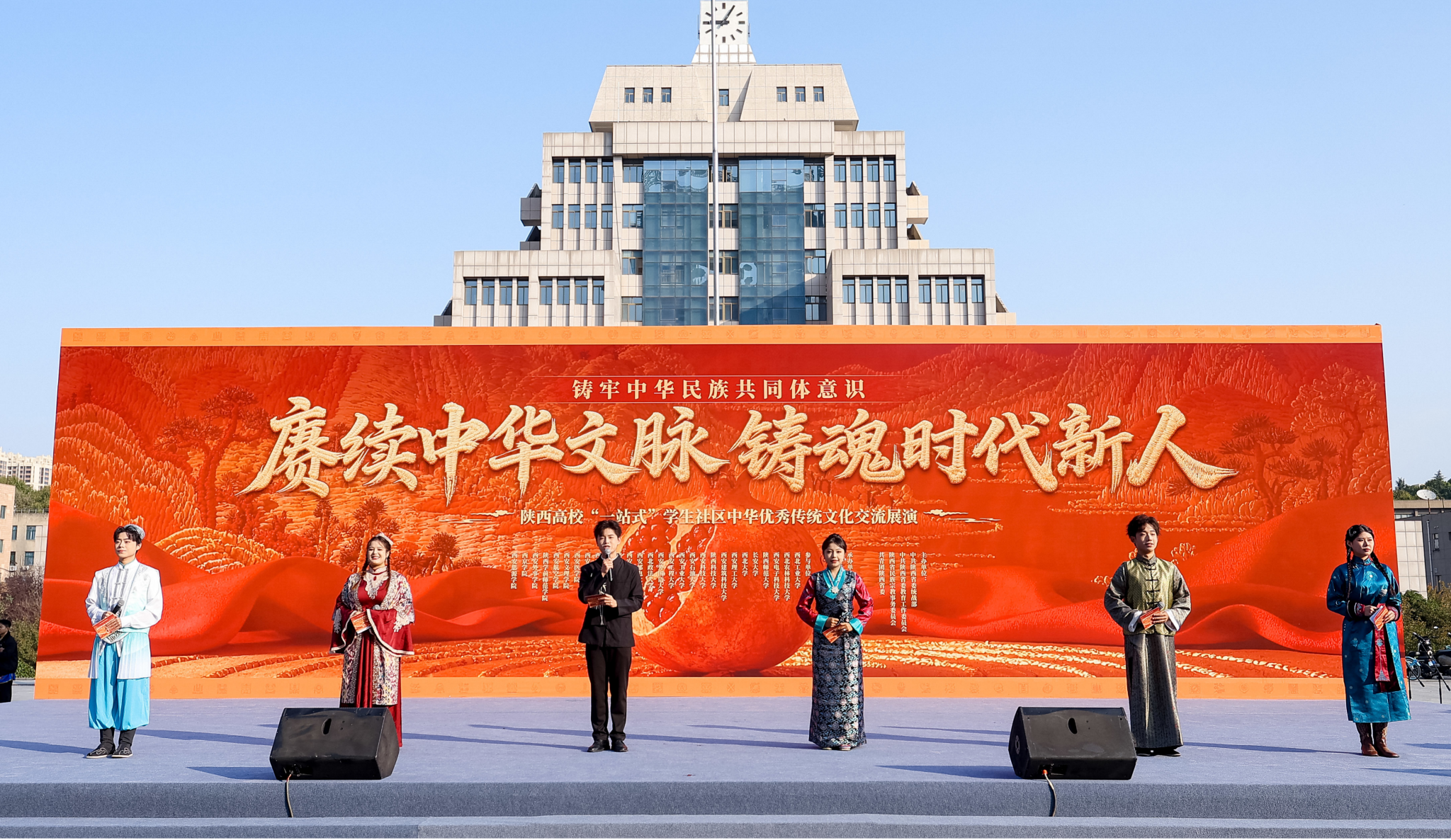 本次活动由陕西省委统战部、省委教育工委、省民宗委、共青团陕西省委联合主办,通过民族团结文艺汇演、各民族优秀传统文化及实物展等内容,为全场师生打造了一场立体多元的中华优秀传统文化盛宴。