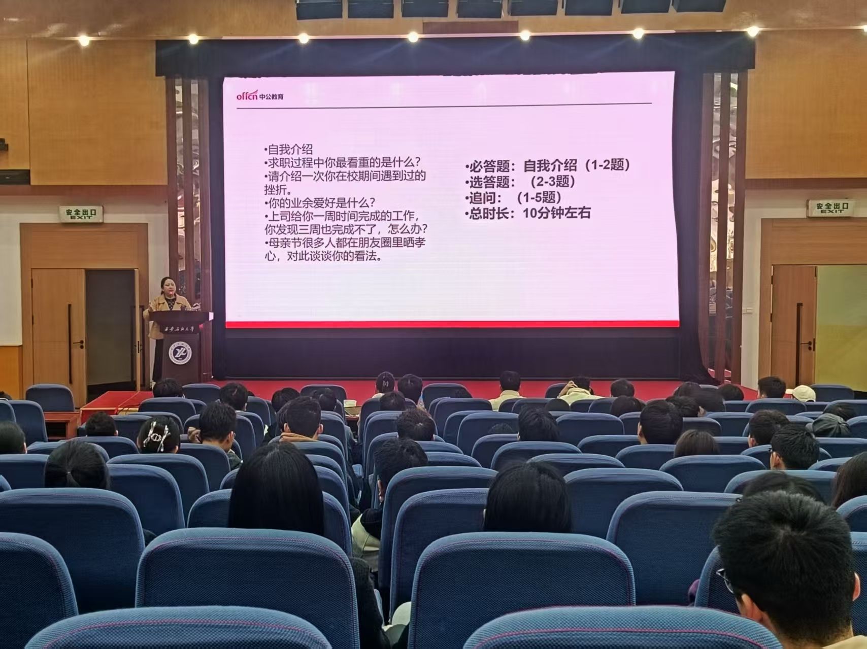 为持续优化就业结构,切实提升毕业生就业质量,精准强化我校2026届毕业生在“三桶油”校园招聘中的应试核心能力,11月15日至16日,我校在雁塔校区学术报告厅和鄠邑校区崇文楼118报告厅分别为研究生、本科生举办集中面试培训,全校600余名毕业生参加培训。