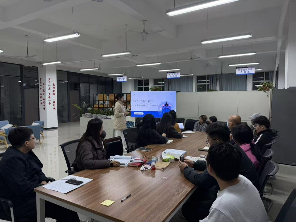 为提升辅导员队伍的心理育人水平与学生工作实效,2025年11月27日晚,学生工作部(处)在鄠邑校区开物楼117办公室举办第十八期辅导员交流研讨沙龙。本次沙龙由经济管理学院李夏凝担任主讲,围绕“‘心’‘新’相印——心理技巧在辅导员工作中的应用”这一主题进行了深入分享与交流。新能源学院党委副书记袁家宝及各学院辅导员代表参与了此次活动。