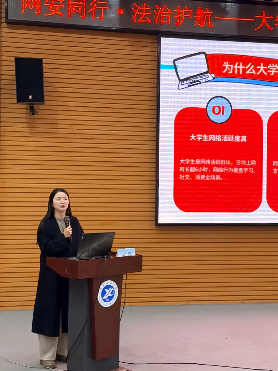 整场讲座内容紧凑、案例鲜活、贴近学生实际,既有法律条文的权威解读,又紧贴大学生日常网络使用场景,对提高学生的法治意识和自我保护能力具有重要意义。