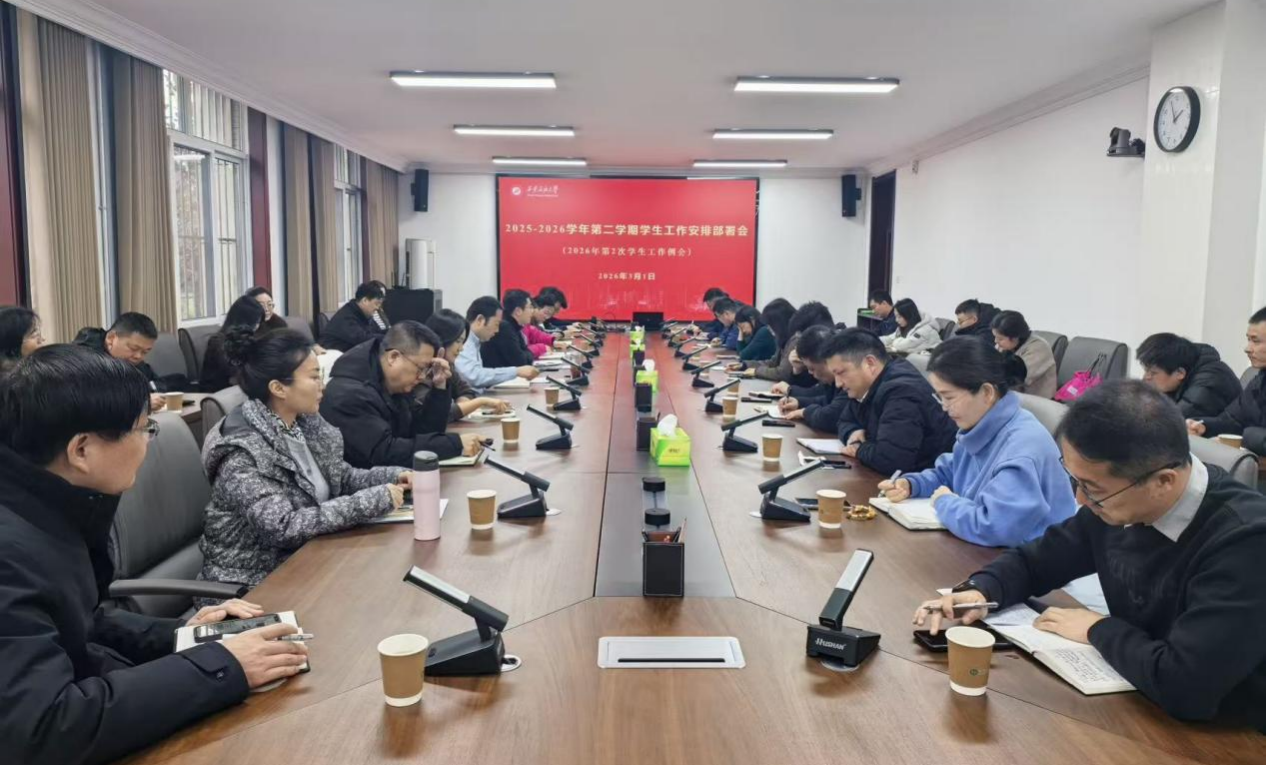 为深入贯彻落实学校高质量发展战略部署,系统总结阶段性学生工作成效,全面部署新学期重点任务,3月1日下午,学生工作部(处)在鄠邑校区第三会议室召开2025—2026学年第二学期学生工作安排部署会。各院(系)主管学生工作负责人、学生工作办公室主任及学生工作部全体处科级干部参会。会议由学生工作部部长王亮主持。