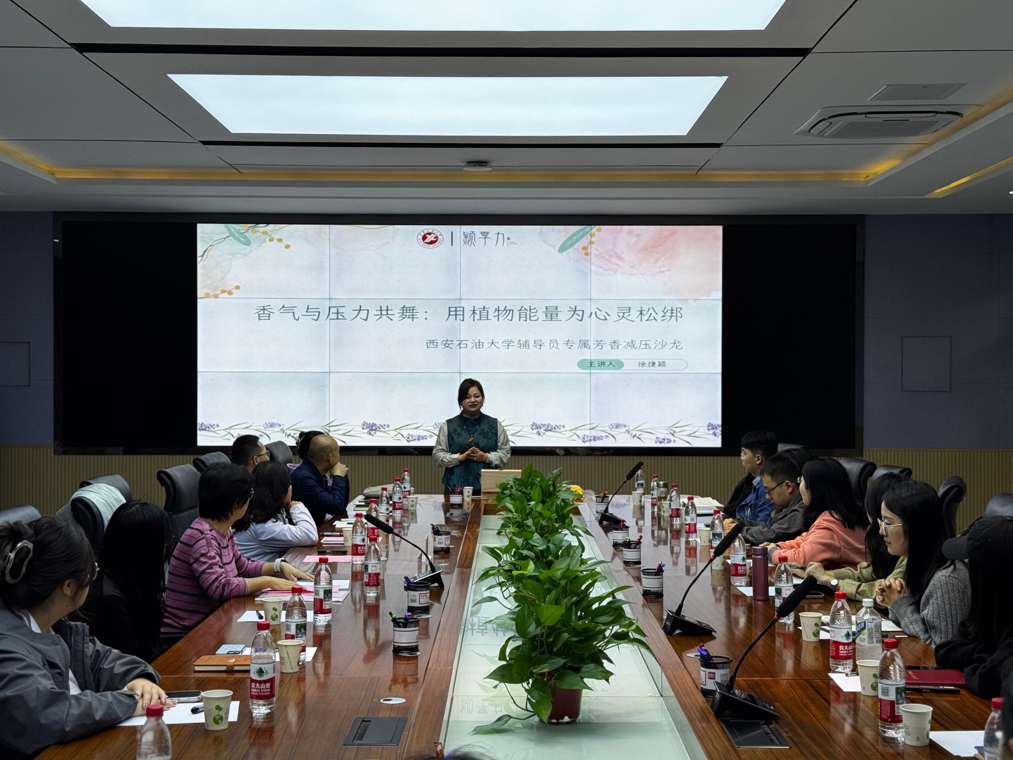 为进一步关爱学工干部身心健康,提升职业幸福感,一场《香气与压力共舞:用植物能量为心灵松绑》的西安石油大学学工干部专属芳香减压沙龙,于10月11日上午在我校鄠邑校区博览楼A116成功举办。本次活动特邀我校电子工程学院2001届校友、国家卫健委认证健康管理师徐捷颖女士重返母校,以其深耕芳香疗法领域22年的跨界经验,为学工干部们带来了一场融科学、艺术与实践于一体的身心疗愈之旅。